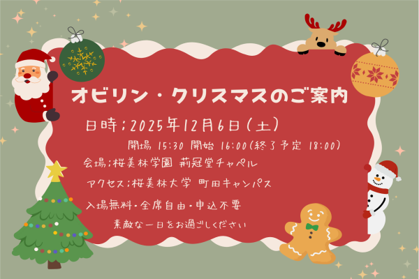 同窓会事務局お知らせ2025年11月14日★オビリン・クリスマスのご案内★ -
