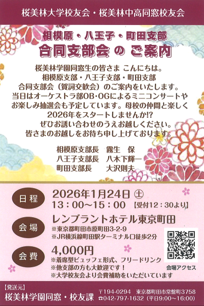 相模原支部・八王子支部・町田支部 合同支部会(賀詞交歓会)のご案内をいたします。