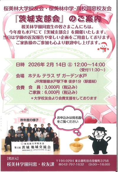 | 会 費 | 卒業生会員: 3,000円 ご家族 : 6,000円 (大学校友会より会費支援をいただいております) |